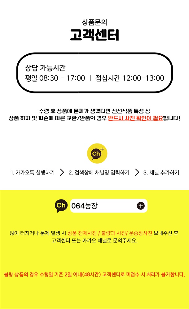 · 상품 불량 사유와 사진을 남겨 주시면 빠른 처리가 가능합니다.